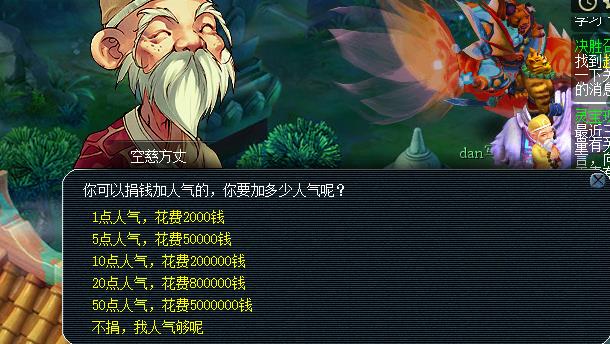 最后一个是化生寺!有小伙伴想起化生寺哪里还有赚钱的地方吗?没错,后院的补人气,最便宜的2w一点,舍不得的又缺人气,就多花钱多买点,一天12小时只能买一次,不知道化生寺这生意每天能赚多少呢!