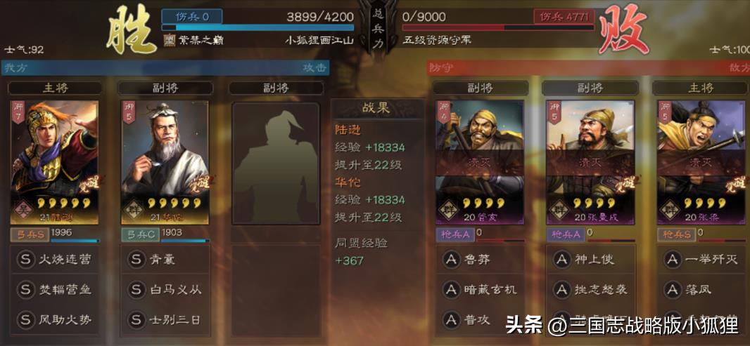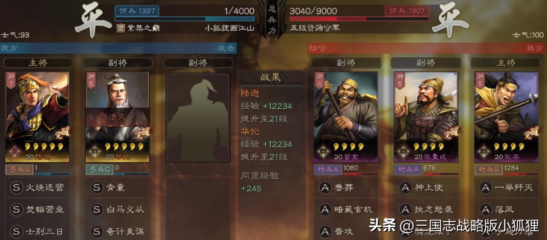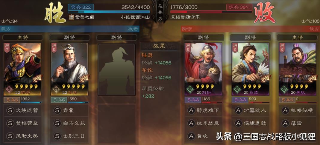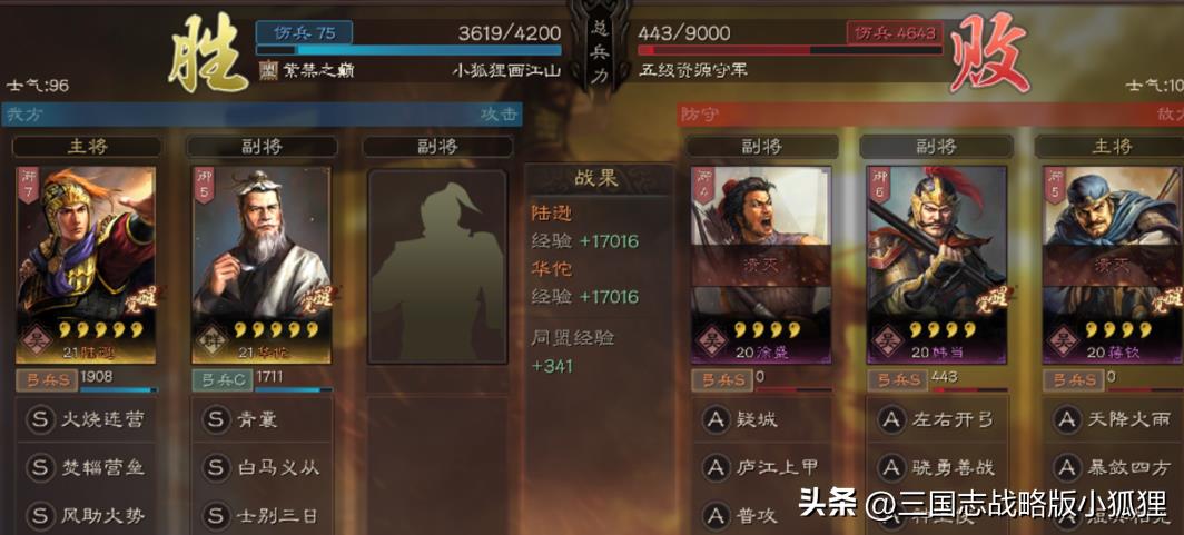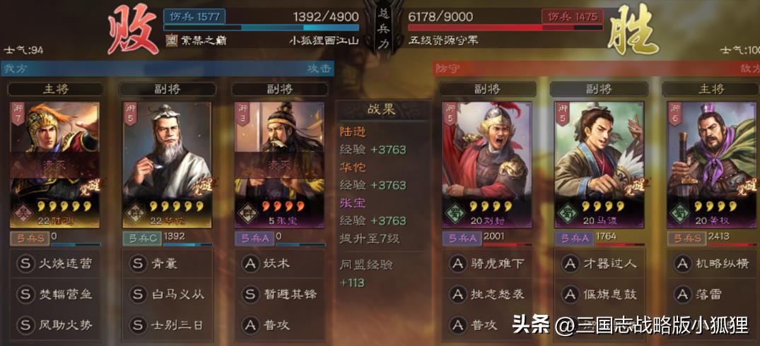 小狐狸并没有说追求极致开荒,没有让刘备、赵云这些武将上场,直接就是拿主力开荒,以免后面还需要转型,今天跟小狐狸一起来看看陆逊、华佗开五的效果: