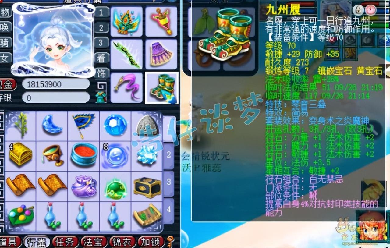 70级简易琴音三叠炎魔神套鞋子,打了7锻吸收宝石,不但有了法系必备特技,更适合做龟速。