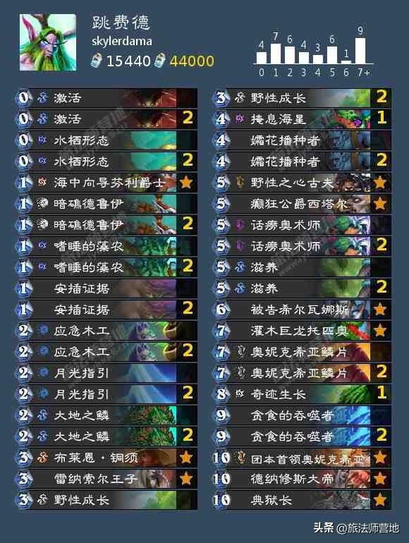 常规的跳费德,核心组件是跳费牌,靠古夫拉起费用。后期的获胜思路就是两套,一是靠大帝的终结策略,今天的卡组是带铜须的!(bushi)配合大帝完成斩杀,第二个思路是靠典狱长的特效免疫之后站场获胜。