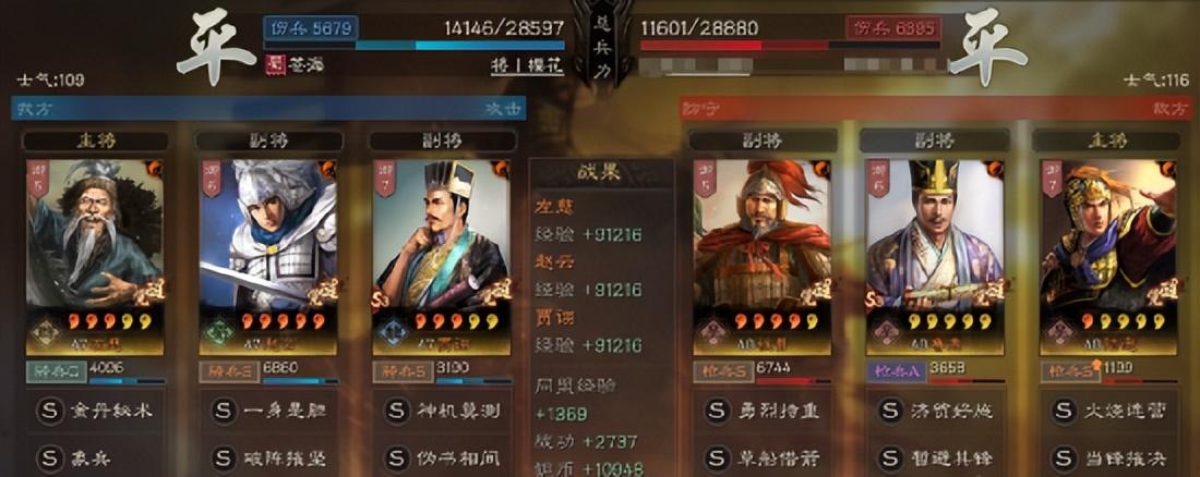 贾诩携带以治击乱+神机+鬼谋,带以治击乱的原因是为了跟贾诩超高发动率的主战法打出联动效果,增加自身的输出,鬼谋也是同理,三主动战法带鬼谋收益是非常高的,再配合神机先手效果打出混乱控场。