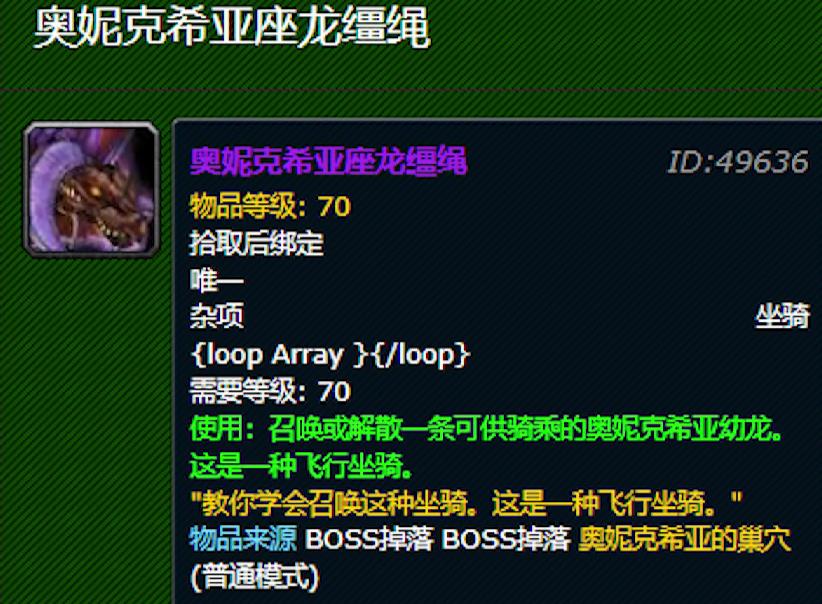 但是这个副本依旧有着很高的出镜率,甚至还有很多玩家每周都会去光顾一下(虐杀一遍)。倒也不是有什么特别的原因,单纯就是因为这个副本他掉坐骑(奥妮克希亚座龙缰绳,怎么也想不到原来龙也是靠缰绳拉住的啊~)。这个飞行坐骑还是非常好用的,也是个稀有道具了,并且没有种族之分,联盟和部落玩家都是可以获得的!虽然是飞行道具,但是在地上也一样可以骑乘,又方便又帅气又实用,不愧是你啊奥妮克希亚!