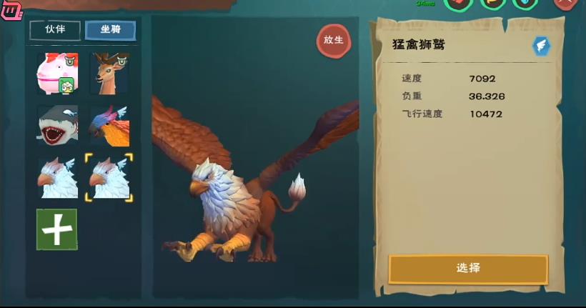 其他四个飞行坐骑要么是需求的等级高,要么就是驯服用的饲料原材料太难得到了。