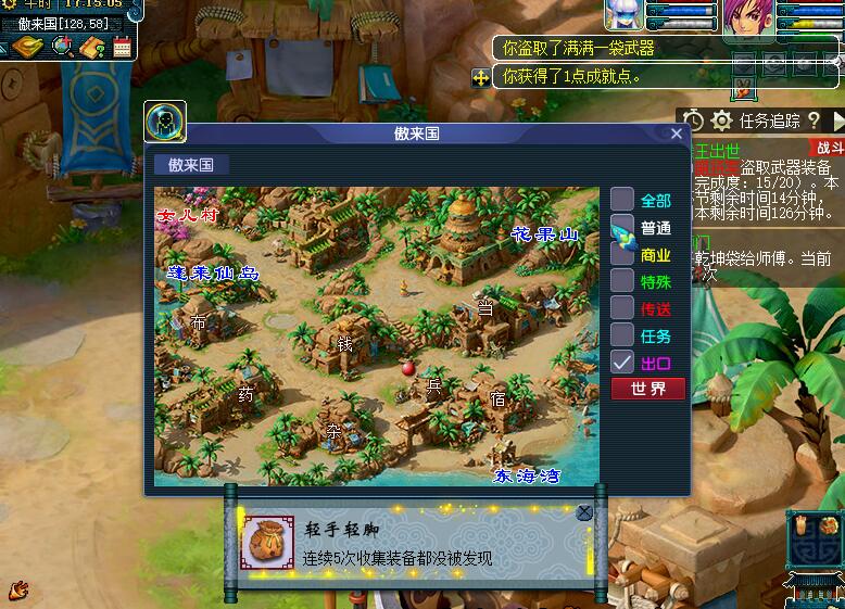猴王出世副本任务如果不是因为五行斗法的原因很多玩家都不会去刷,因为猴王出世副本任务根本就没有比较好的物品奖励,但是在猴王出世副本任务中却存在着两个非常难获得的成就,这两个成就就是在傲来国取装备的那一环节,连续五次不遭遇战斗又或者连续五次遭遇战斗都会获得一点成就,只是刷出来的人不多,小编刷连续五次无战斗的成就还是拜另一组五开所赐,因为另一组五开比较懒,所以小编的这一个队伍刷的次数就比较多,要不然平均下来每一个角色完成的任务次数都不到五次。