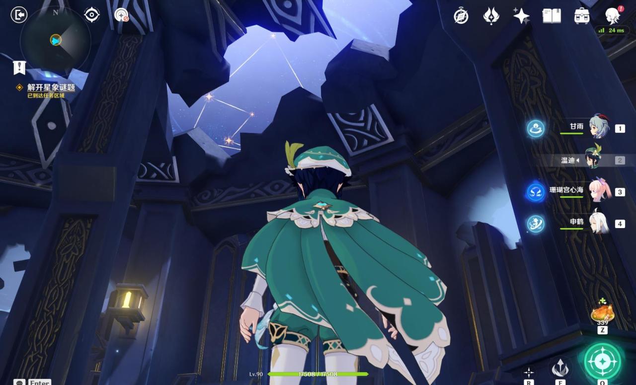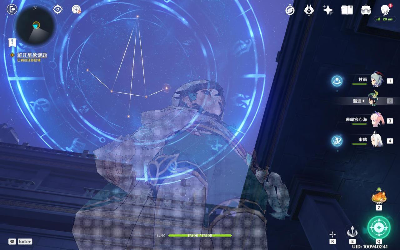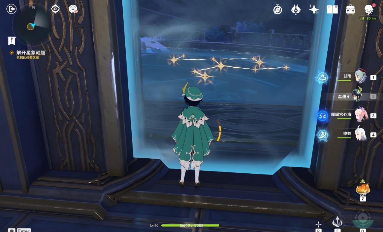 第二门结束后追星这段,有个看不见的墙这边单独说下,天空中的星点代表了玩家,按照天空的位置来进行移动,别走太快了。