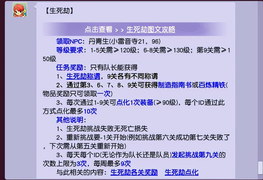 众所周知,玩家想要通过挑战生死劫的策略来获得150级制造攻略大全书或百炼精铁的奖励,首先等级一定要达到150级以上!并且,成功通关生死劫1-9关的全部挑战才可以。此外,从第3关开始,每成功通过1关,玩家都可以获得奖励。