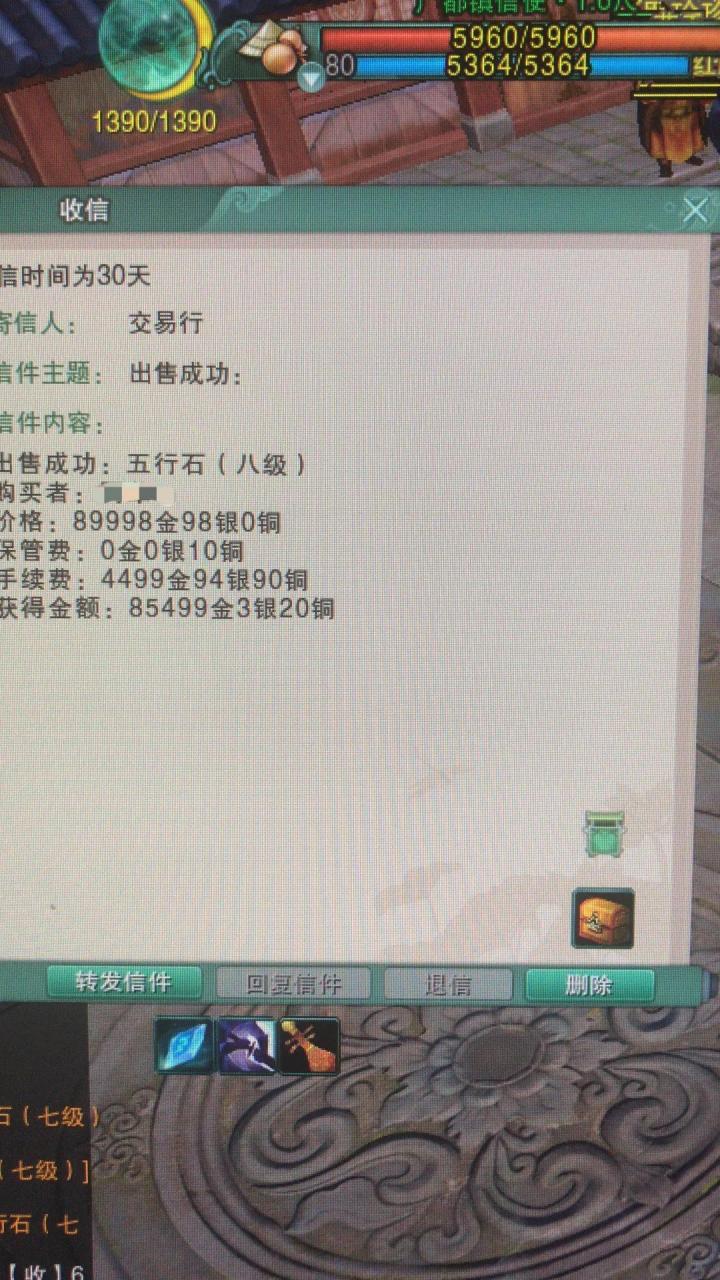 然后我把剩下的全部都摆到9w,因为我觉得9w已经是巅峰了,因为8.5w的五行石卖了好几天,那就证明8.5w已经劝退了一部分玩家,但是,我错了,土豪的心里没有价格,只追求装备极致,9w金我又出掉了。