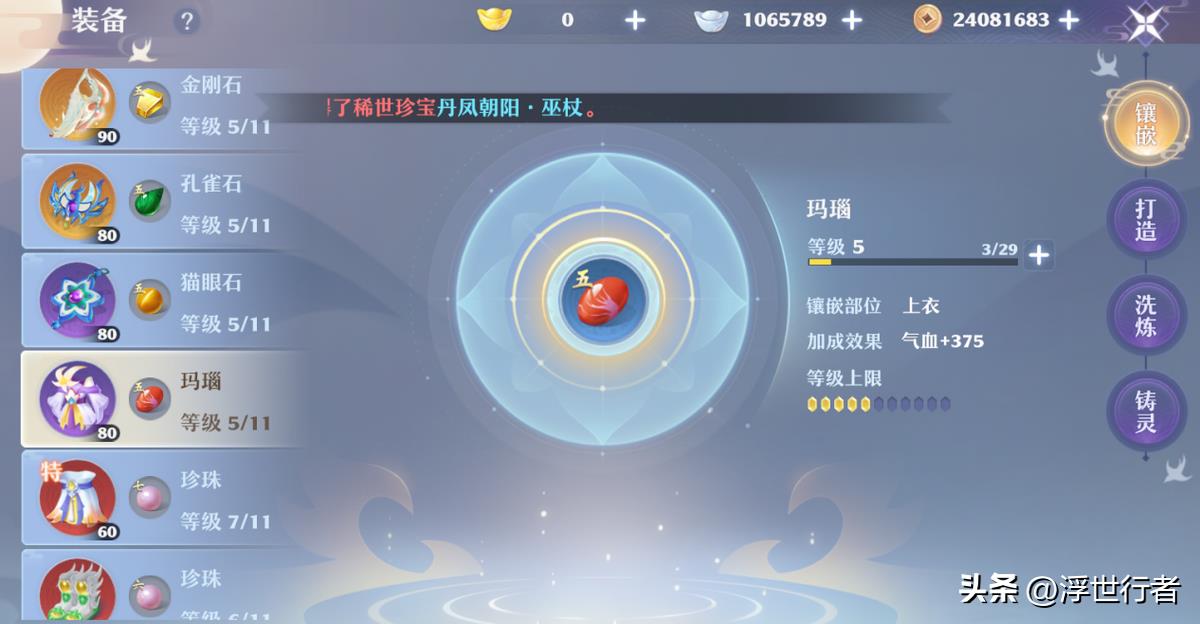 武器可以选择紫水晶或者金刚石(尤其选择繁花天书的必选物攻宝石),上衣可以选择玛瑙或者孔雀石,前者可以提高气血,PVE玩法更实用,后者可以增加物防,PVP中生存环境会好一点。