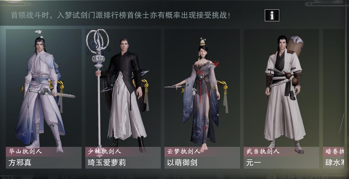 入梦试剑副本中有的BOSS还会召唤“执剑人”一同攻击副本队伍,加大副本难度,在进入副本之前各位少侠可以酌情购买加血上限、外功上限等增益性道具,降低副本难度。