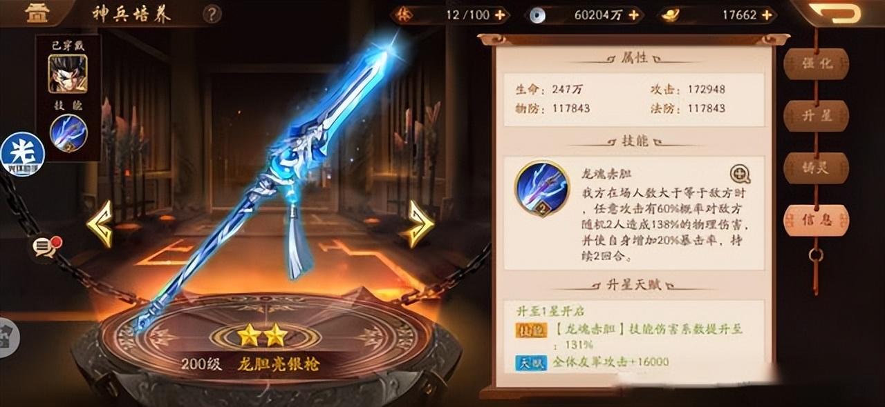 游戏之中还有着最为珍稀的金色品质,这个金色的只有四种,而且都是最强和最厉害的。第一把龙胆枪它便是你强它也强的一个最为之典型的兵器,它的效果是我方队伍的人数高于敌方的时候,是能添加咱们的进犯的而且对敌人形成巨额的损伤及暴击的效果。第二个便是苍叶琴,它是咱们的人数少于敌方的话就能治疗或者恣意进犯对方然后回复咱们己方最少两名的血量,而且还能添加咱们的防护。第三个是蛇矛,它的效果是让自己的血量提高百分之五十,然后咱们进犯有着概率会对敌方最高战力的周围形成规模损伤,而且能触发三次。最终一个是团扇,它便是能添加咱们的毒素损伤而且操控也有所提高。