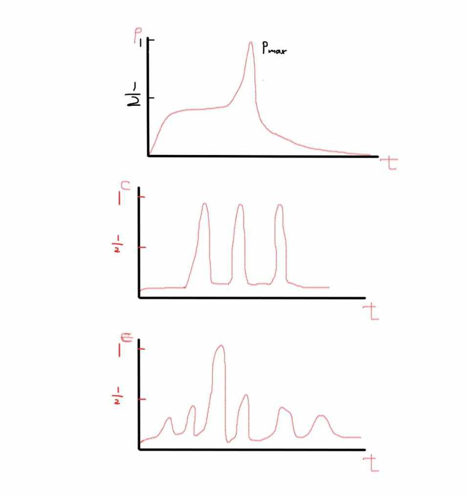 一个周期内P-t函数连续,存在极大值Pmax。一个周期内C-t函数连续,存在极大值Cmax。考虑极端情况,会有以下7种输出。