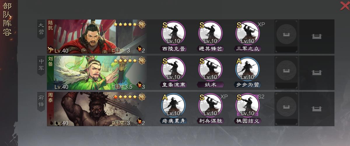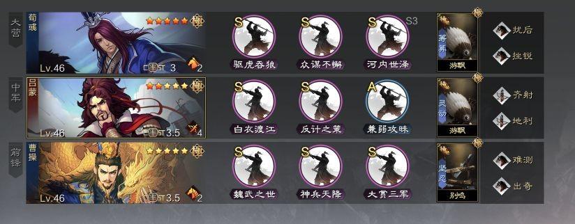 周泰的主战法前几回合能提供大幅度免伤并且自带援护,能防止友军被马超普攻打掉大量兵力,同样的,三个武将都有回复战法,且周泰谋略越打越高,输出也越高,肉步主要靠妖术和周泰输出
