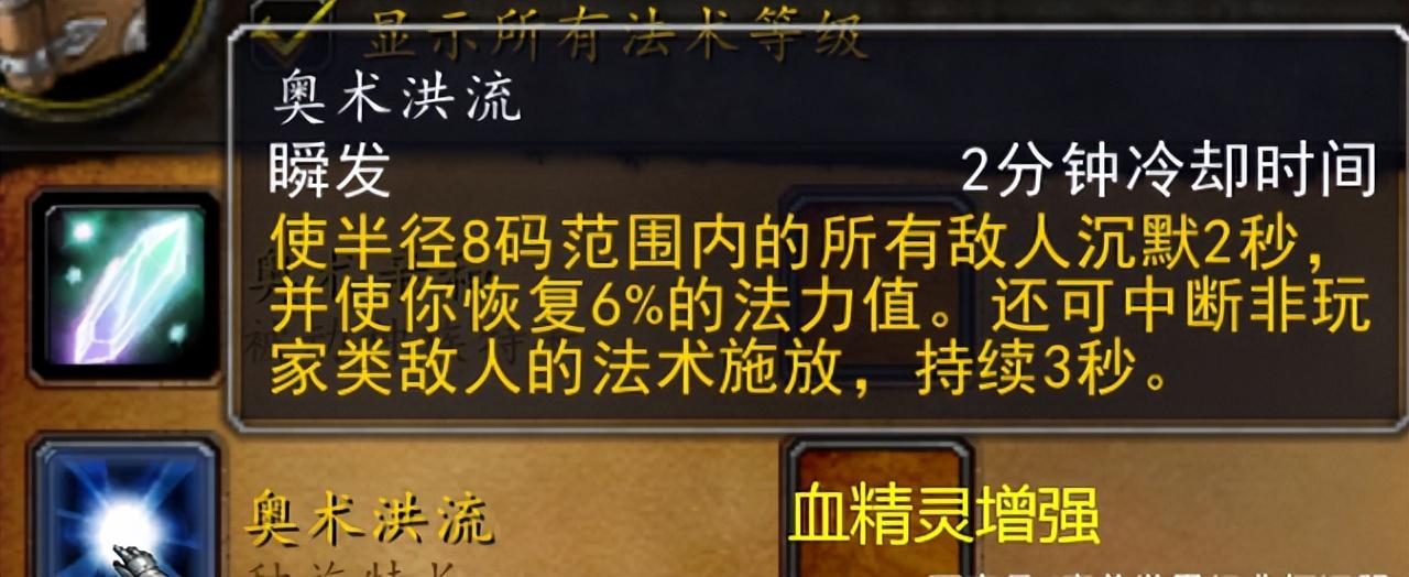 原来血精灵的奥术洪流要配法力分流才能使用,改版后直接取消了发力分流,使用奥术洪流就可回复法力/能量值。