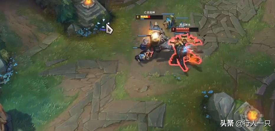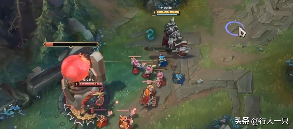 在面对刺客时,高血量和清线的属性让他能比刺客发育得更快,没血了就老老实实回家补给然后TP回线;