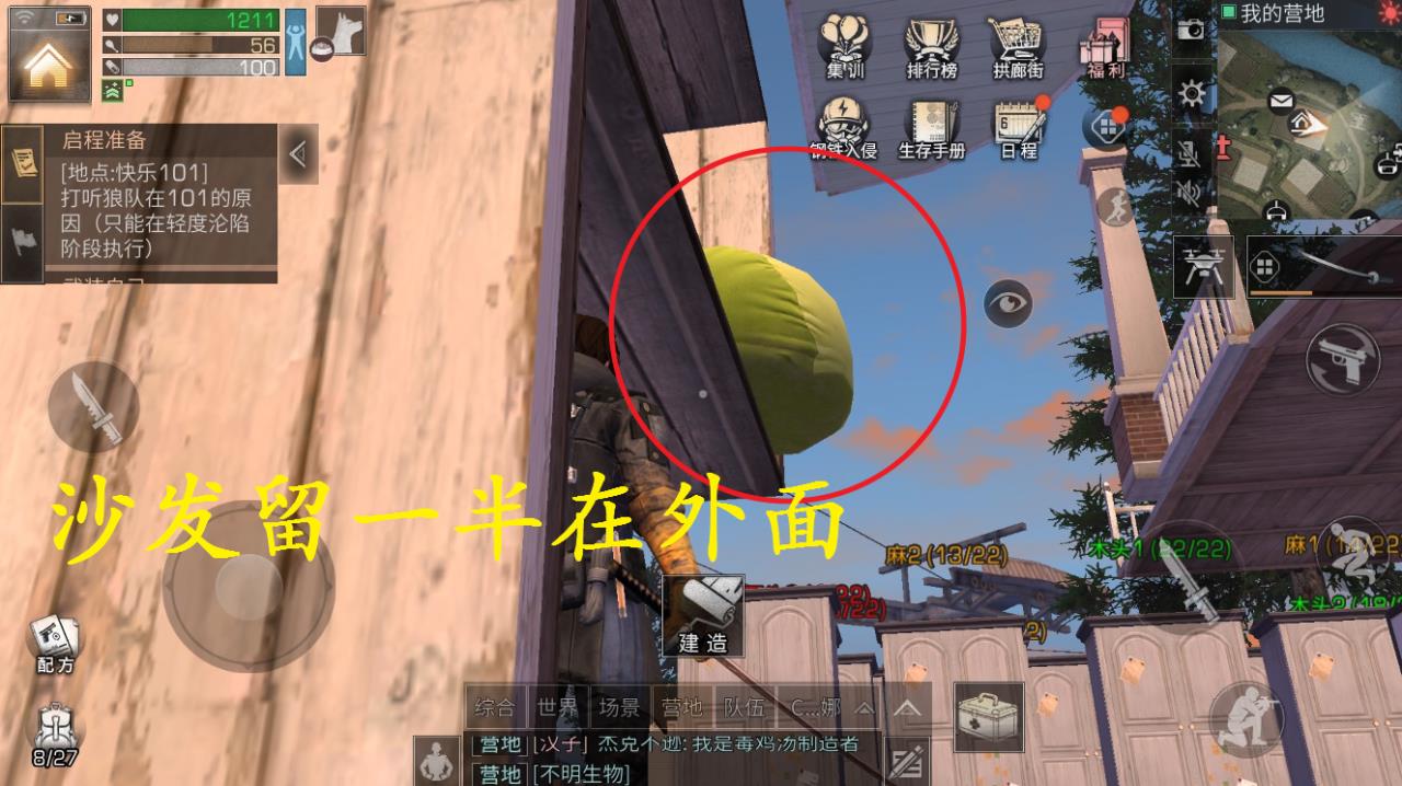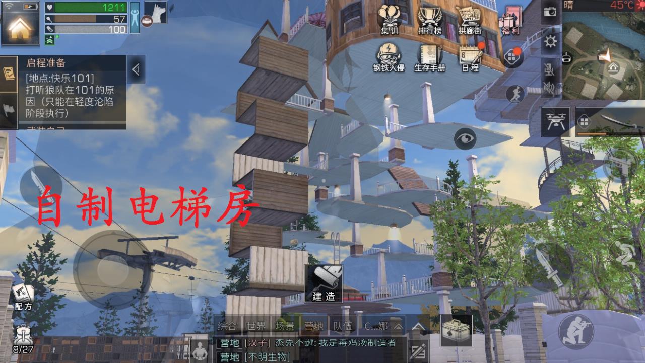第二部呢,就是要寻找一块空地,然后放上半身墙,再将木地板放在半身墙的上半截。这样就会形成一堵墙加上一个天花板。这个半身墙不可行摆放在“上电梯”的那个口上,不然在乘坐电梯的时候会被挡下来的。除了那一个口之外都可以放。但是要保证每一块地板都是要对齐的,不然上电梯的时候就会上不去。