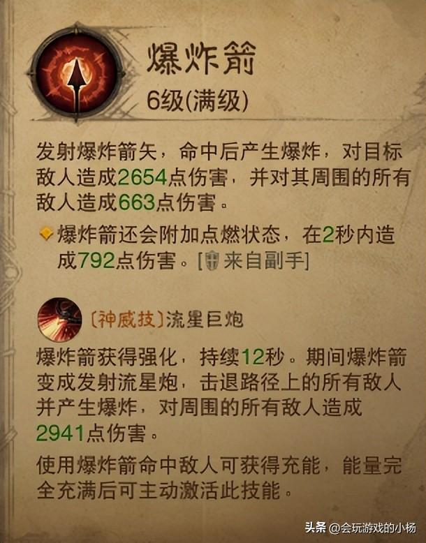 -普攻,使用爆炸箭,维持刷野效率且能在技能真空期提供AOE。爆炸箭充能强化的流星巨炮也挺适用快速刷橙、金色野怪,基本都会击退(BOSS除外),配合墙体压制,爆炸的AOE提高伤害,会有不错的效果。