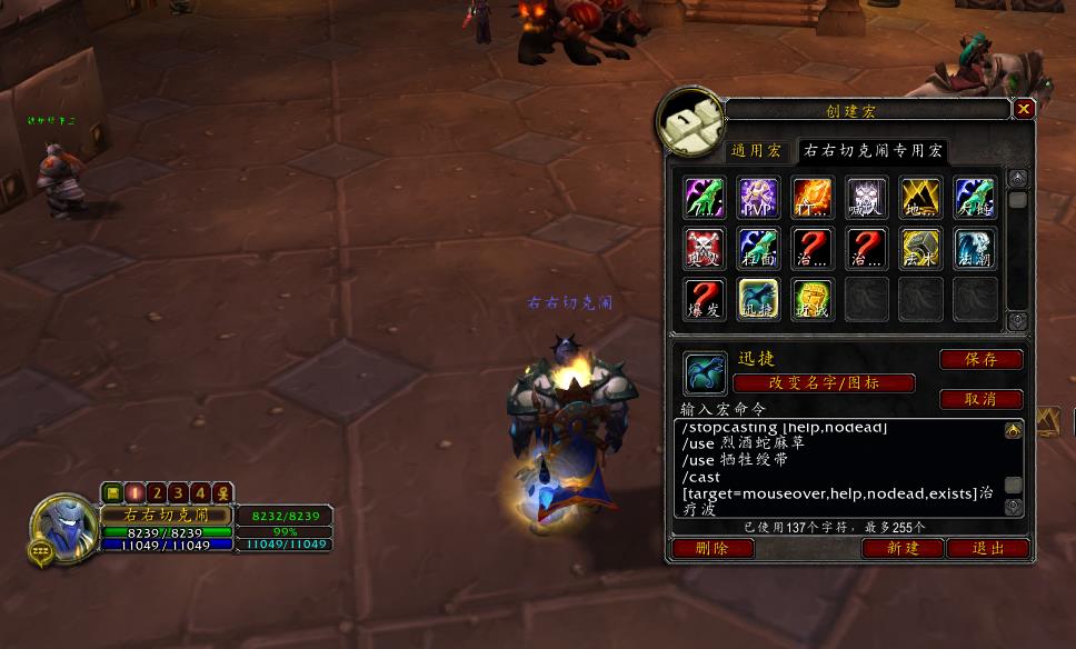 一般我是给5级治疗链,4级治疗链,满级治疗波,满级次级治疗波分别做了4指向宏。