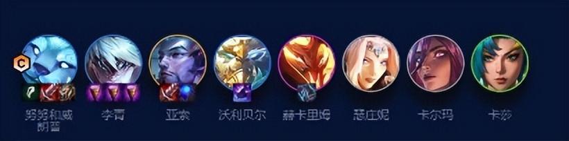 1.弈子组成:努努和威朗普(神龙尊者纹章)、李青、亚索、沃利贝尔、赫卡里姆、瑟庄妮、卡尔玛、卡莎