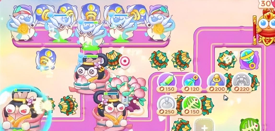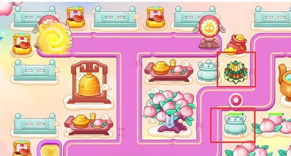 今天主要使用的炮台也是他,玩家可以很好地利用该炮台善行范围的攻击来清理周边,所以只要有空我就建造弓箭炮台,但是在兔子出口的地方建造两个闪电,这样可以有效地对他们进行速度压制影响力,但是等到第四回合七仙女出现的时候就不要再标记桃子树了,基本到第五回合市场上的道具已经全部清除了,这个时候只要攒钱对炮台进行升级就可以了。