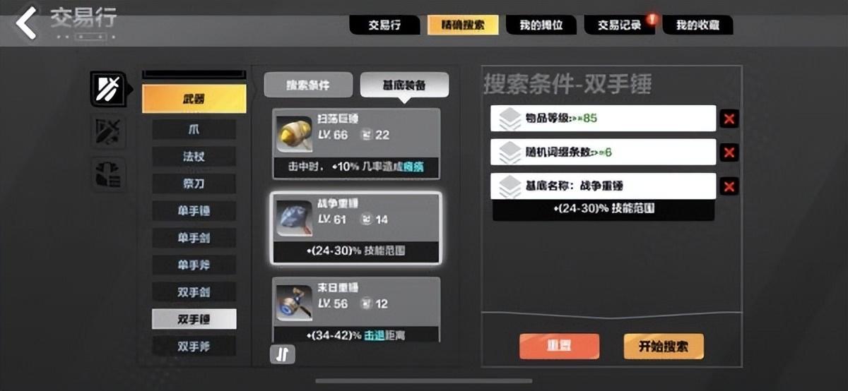 实际情况策略就是,打开拍卖行,使用精确搜索对该装备进行搜索,实际情况搜索条件为,物品等级>=85,随机词缀条数>=6,然后选择该装备的基底搜索,大概的看一眼该装备拍卖行的售价,根据售价来判断该装备是否能卖。
