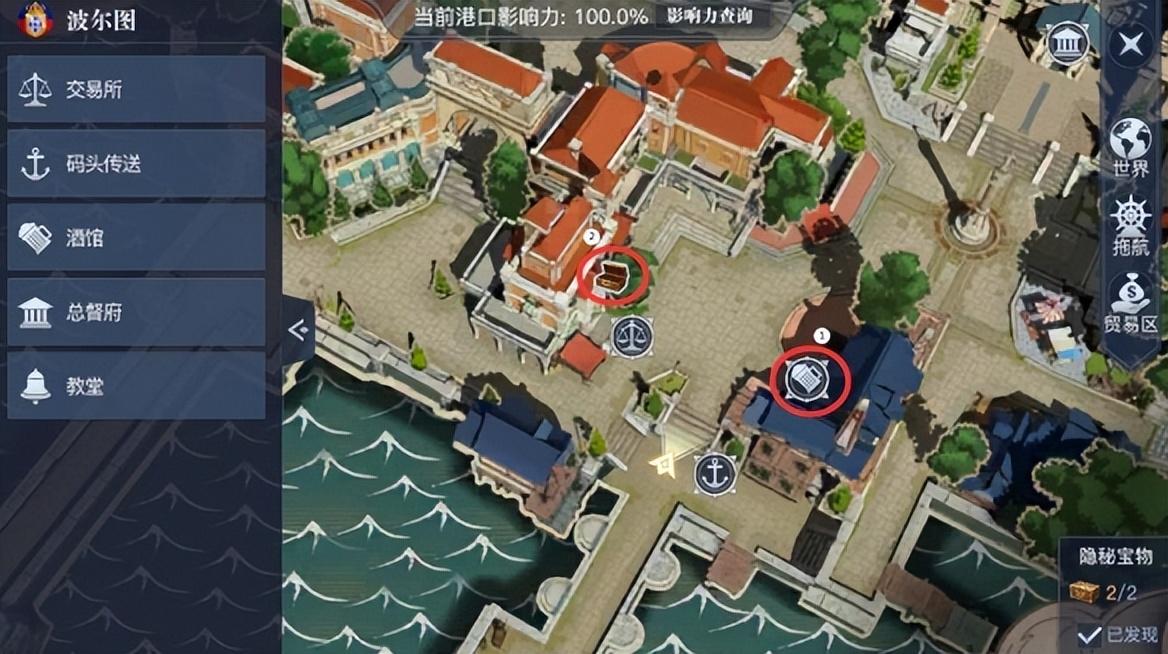 黎明之海的波尔图隐秘宝物一共有2个,大概位置查看下面地图显示。