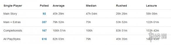 在HowLongtoBeat统计的数据中显示,完成主线最快的玩家耗时28小时28分钟,中位数为47小时左右,平均耗时45小时29分钟。当然也有不少使用“Any%”速通玩法的玩家将通关时间压缩至半小时以内了。