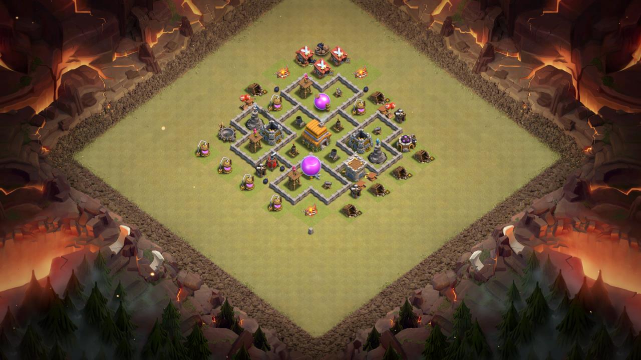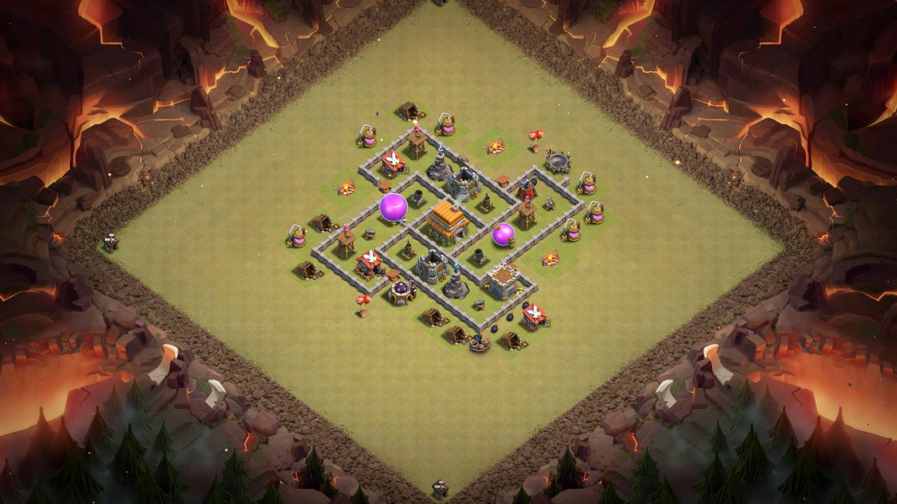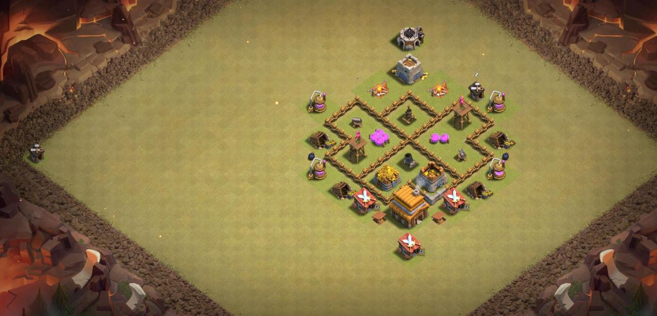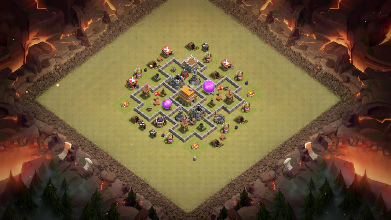 4本以前没有没有开放阵型链接的功能,所以大家进入游戏,先直接把大本营升到4级就行,其他的啥也不用管。4本也不用停留太久,把罐子升一升就直接升5本吧,所以4本阵型只推荐了一个,帮大家守资源用。