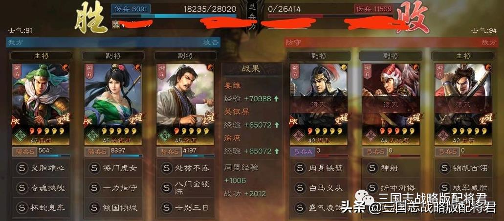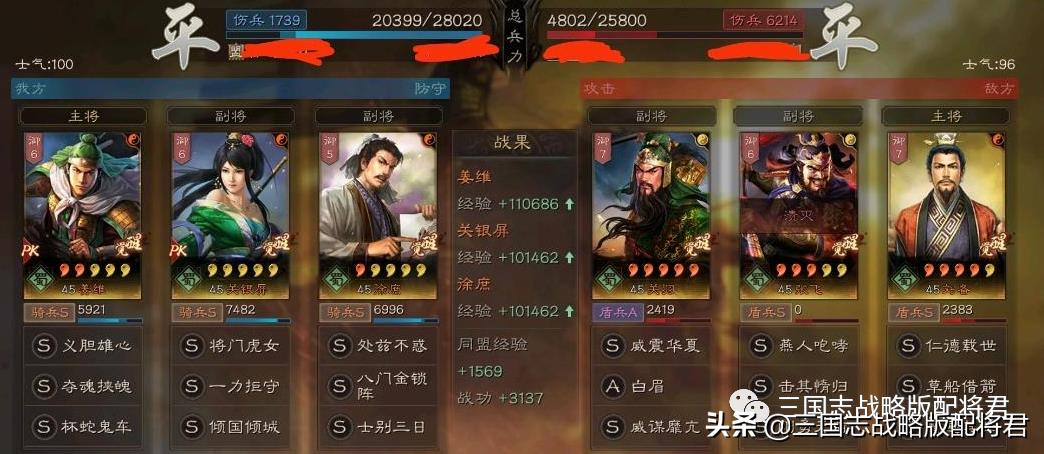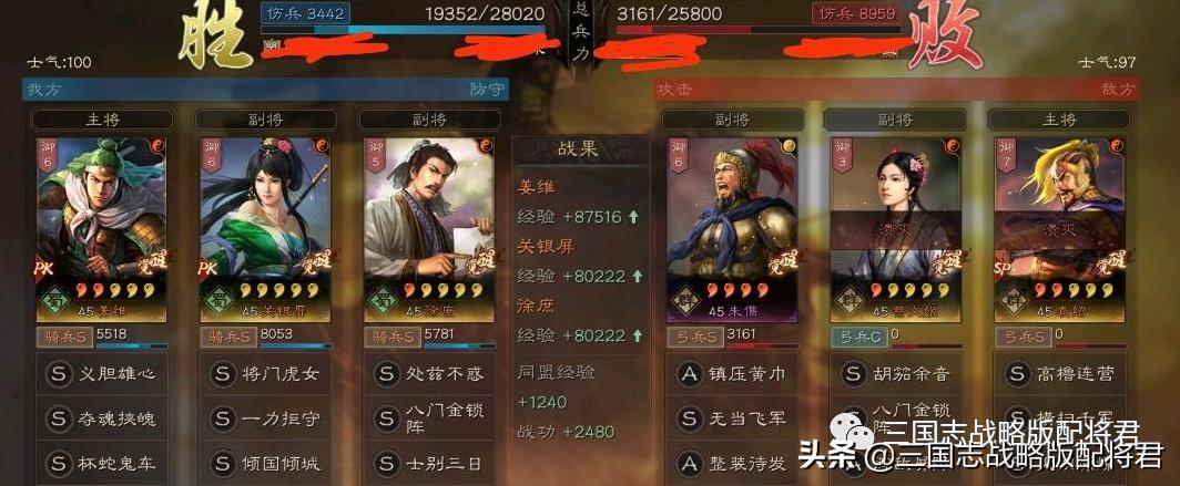 对战满红大佬的吴骑阵容,在兵力占据优势的情况下,最终兵力在保持在2W左右小胜一手!
