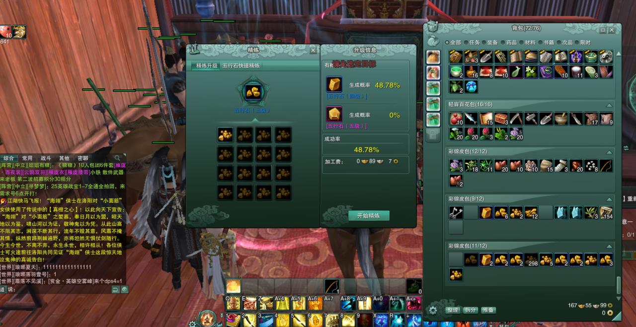 一个3级加16个一级五行石合四级,成功率只有48.78%,不过这个策略比较省精力。成功的话,只需消耗精力20点就能得到一个四级五行石。失败的话不消耗精力,损失16个一级五行石,和89银。平均算下来的话300多精力就能合成一个六级五行石了。