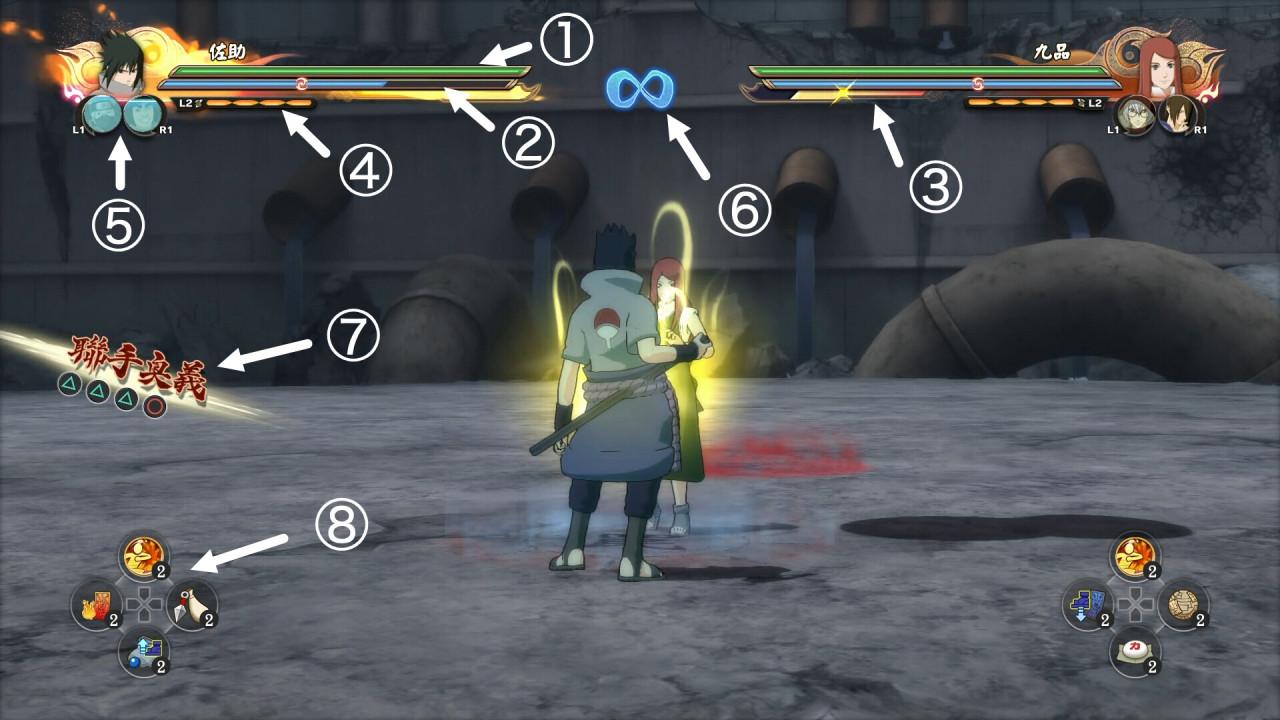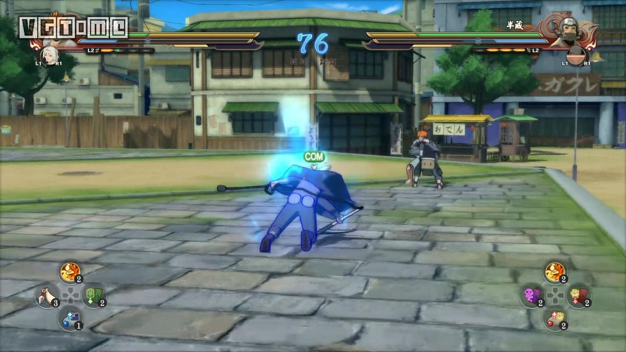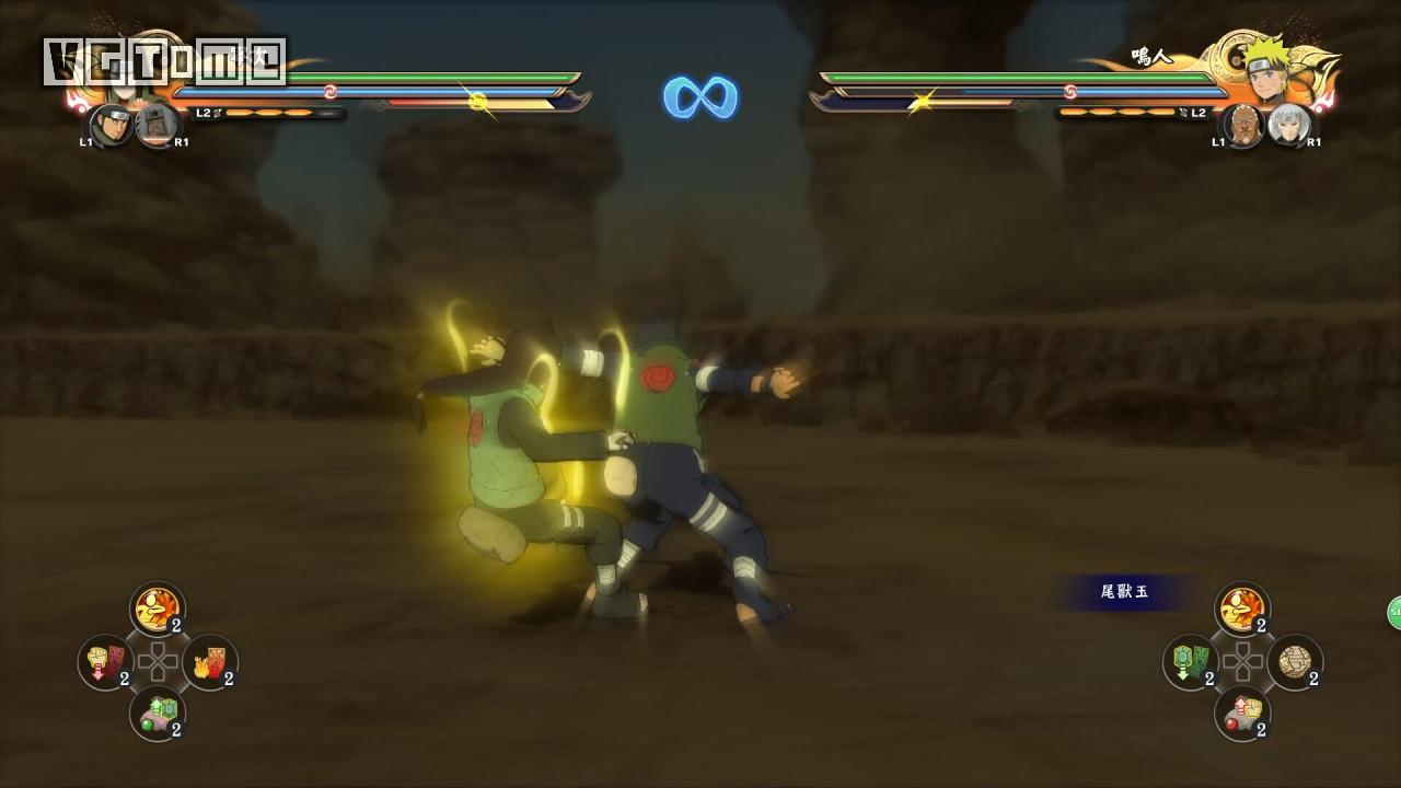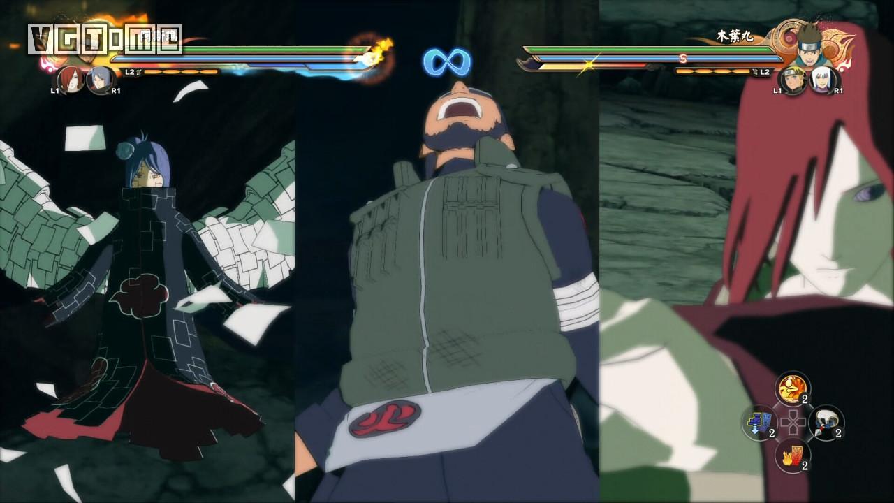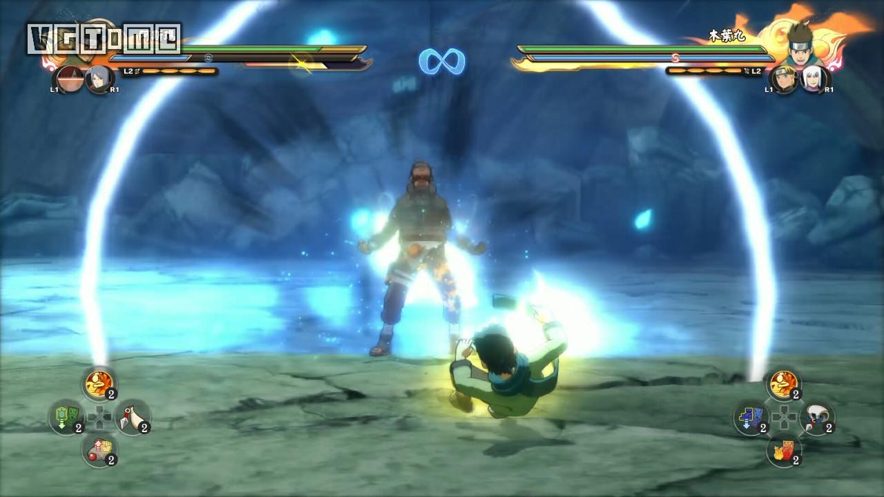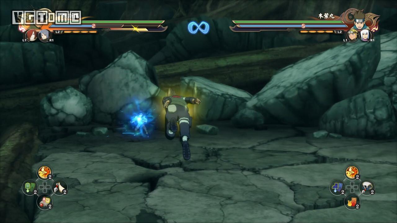 回击技:R2/RT+□/X在对手攻击前的一瞬间将其弹回并击倒(类似格斗游戏中的“爆霸”),此技能需要消耗查克拉上限,随后查克拉上限会慢慢恢复。