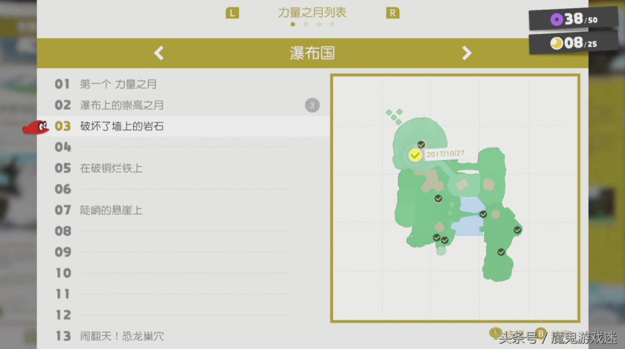 瀑布国激发月之石之后,共有40个月亮可以收集,整理了一下收集攻略,希望对大家有帮助。费话不多说,按列表顺序我们一个一个找。