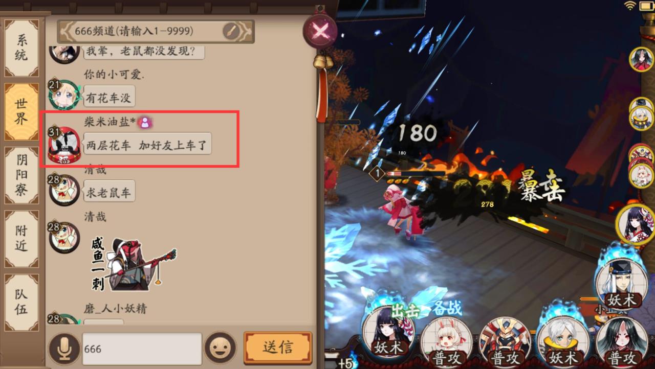 这时候我们就需要找到本区专属的刷桃花车的频道,频道号可以去世界上问一下。我所在区桃花车的频道号是666,果然就看到副本主人在频道里发言啦。