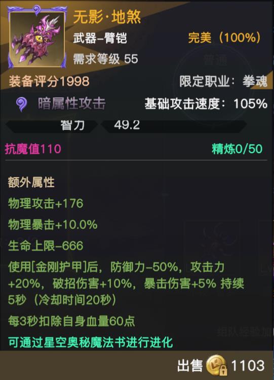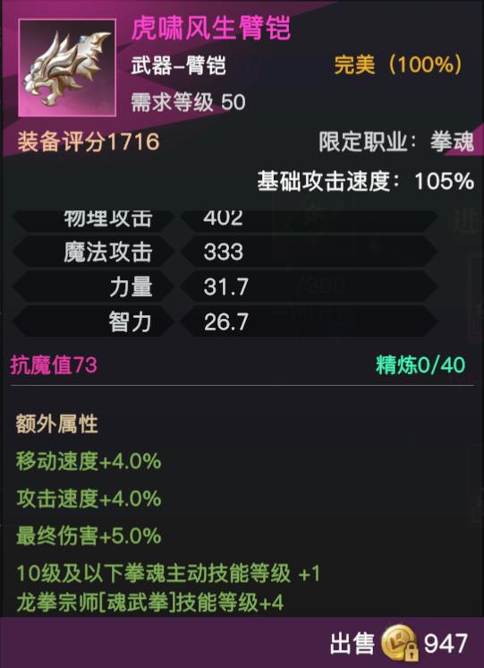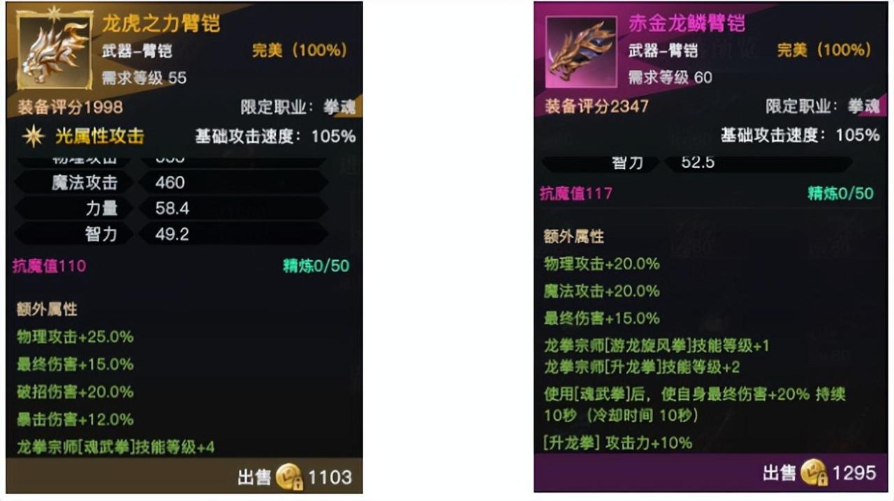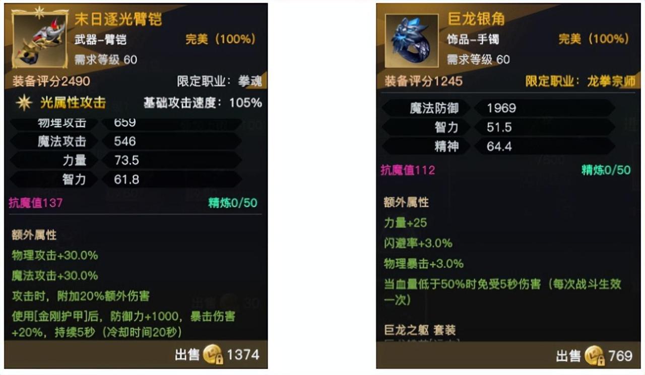 龙巢商店宝箱开出的这个橙武新增了防御特效,十分适合龙拳宗师;职业手镯也可以给龙拳宗师更多的血量保护。