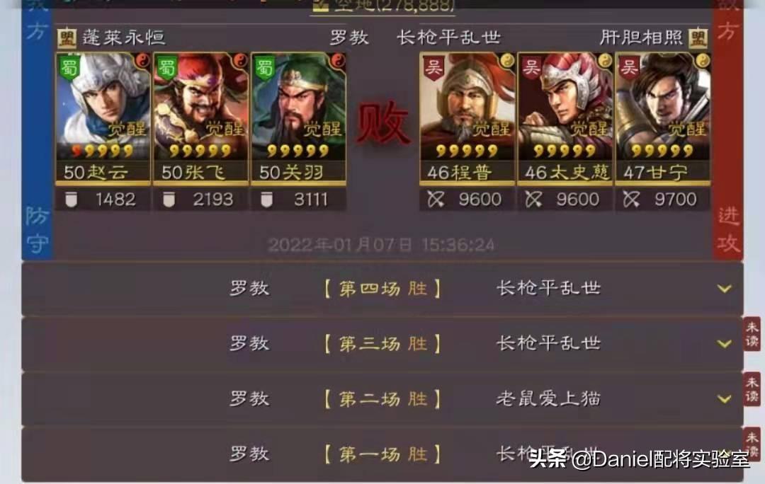 连续多穿,5场全是满兵,不是斯巴达,一次行军,1w4战功到手。除了说明爆发能力强之外,适应性也挺强,面对多种阵容,都有一战之力。(原因是五虎的控制能力强也是一大属性,同时赵云不吃控,能稳定地输出、破防,减损敌方兵力,从而降低敌方输出、治疗,来扩大优势)