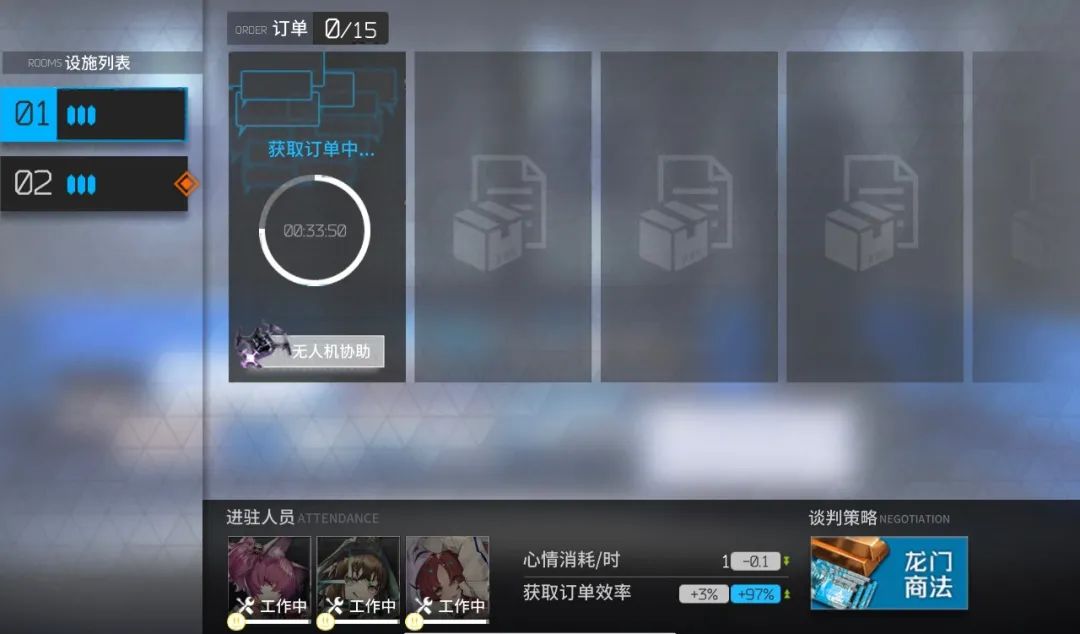 4、高品质订单:以巫恋与柏喙为核心的干员,通过提升高品质订单的出现概率来提高效率。关于增加高品质订单的出现概率的最终概念如下:“高品质订单”就是指四赤金的订单,巫恋和柏喙的“小幅提升”是增加25%,精二柏喙带来的“提升”是增加50%。“巫恋+柏喙”入驻三级贸易站的最终高品质订单出现概率是:90%,在控制中枢的最终加成下变为了97%。