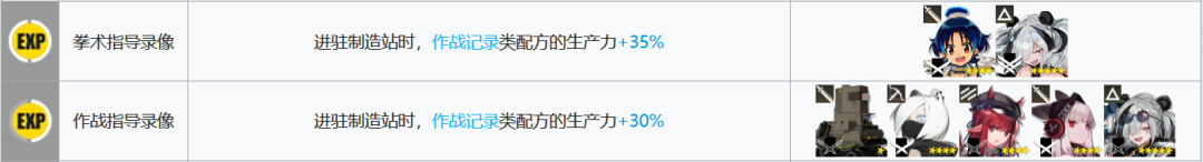 仓库系搭配(2):泡泡与火神、刻俄伯或是稀音搭配,共同入驻制造站。如果选择了刻俄伯,那么可以泛用地生产赤金或是经验书,综合效率是95%,高于红云体系的90%。如果选择加工生产经验书、携带稀音,那么效率将变为99%,低于红云体系的106%。目前版本的结论保持不变:如果仓库系的干员用来生产赤金,那么选择泡泡体系;如果生产经验书,请选择红云与稀音。
