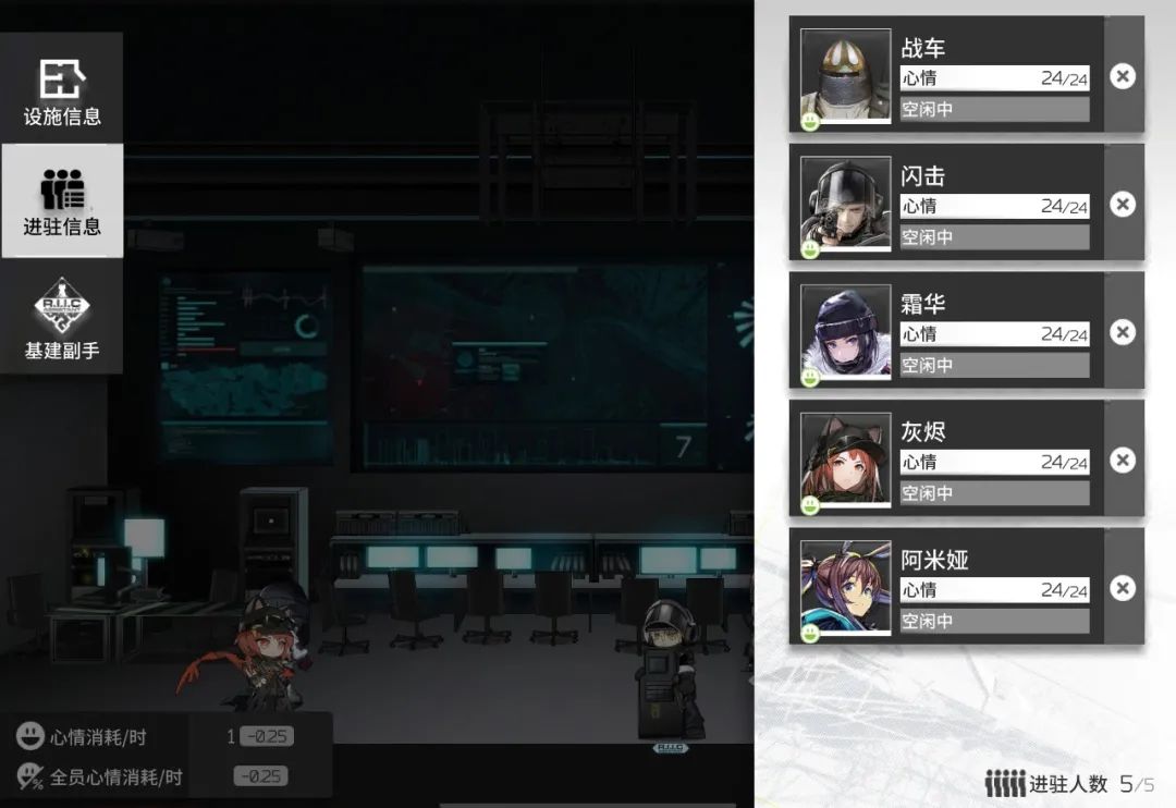 控制中枢新增六位干员,恐怖如斯。在这一次的更新中,发生最大变化的就是控制中枢了,尤其是彩虹小队的入驻,让我们几乎不用在这里设置轮班。同时,夕的出现也为控制中枢引入了新的体系,这个设施已经基本定性成为了一个负责联动生产的特殊设施,专门为各种体系干员提供便利。