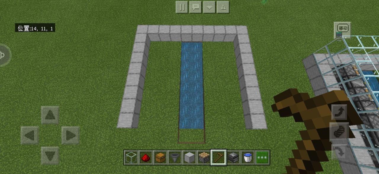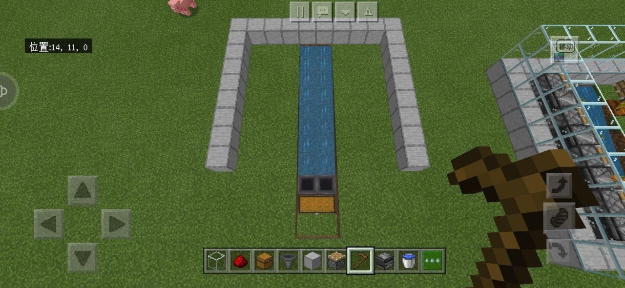 第三步,在水的下一格摆上漏洞,和箱子,漏洞可以在潜行状态下,点击箱子摆放。