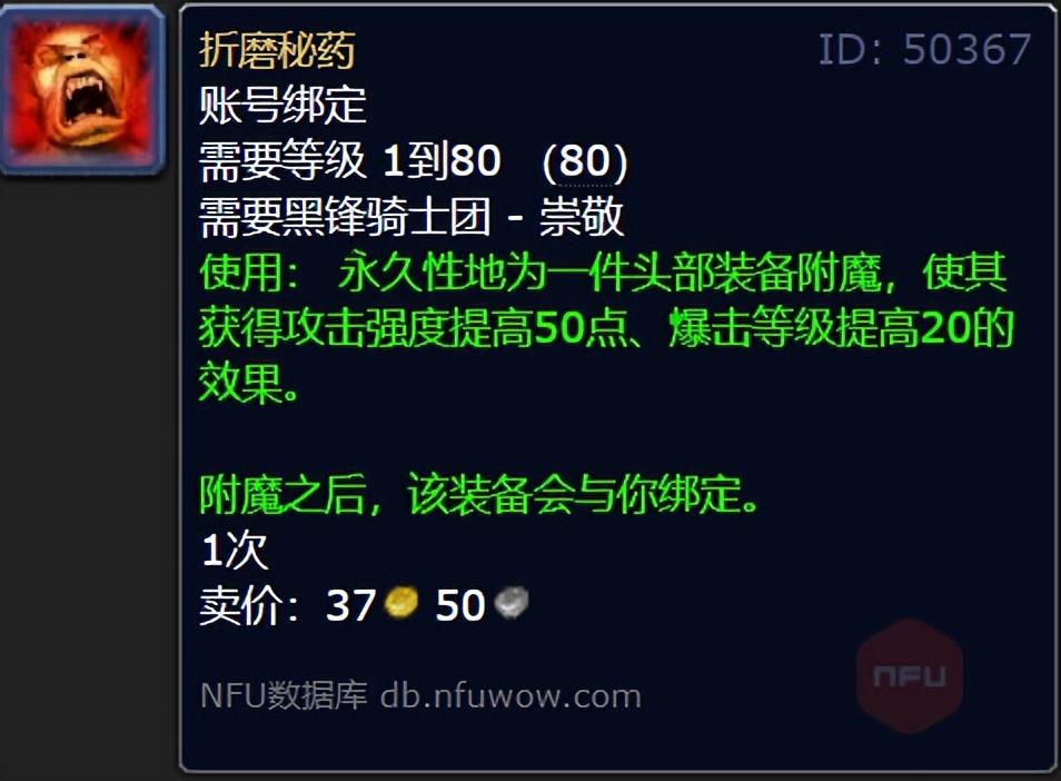 物理输出职业必须要刷的是黑锋骑士团阵营声望,同样的物理输出头部毕业附魔需要在该阵营购买,折磨秘药攻击强度增加50点,暴击等级提高20点,是所有物理职业都必须要购买的。
