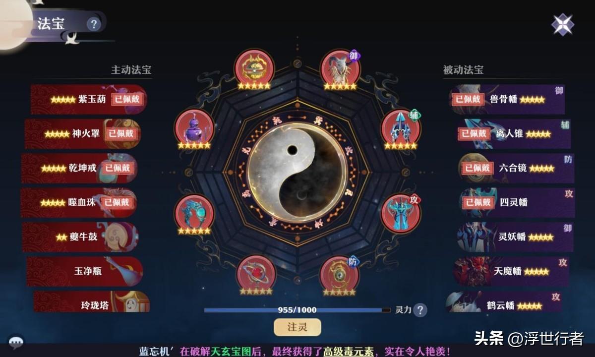 兽骨幡/灵妖幡+四灵幡+六合镜/青灵镜+离人锥。其余法宝有条件的可以洗个不佩戴也能生效的血炼属性,六合镜和青灵镜建议都培养出来,日常和PVP使用六合镜,部分难度PVE(比如兽四或者焚天剑灵)可以换成青灵镜。