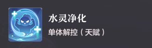 技能效果介绍:水灵洗涤,清除1名友方身上的所有负面状态,并且为其回复10%的法力值。