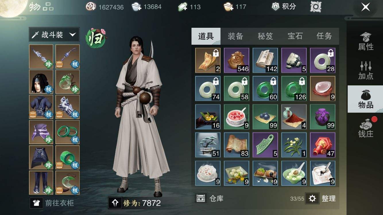 首先就是人物的加点,分为有劲,气,体,御,敏这五项,点劲与气提升修为较多。接下来就是人物的装备啦,装备品质评分高的自然提升的也多,PVE的好装备多从宗师本掉落,也可以从作坊中合成,PVP则需战场套升级。