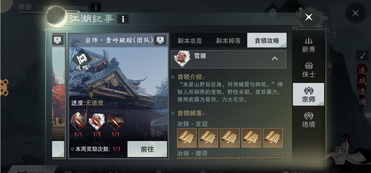 而江湖缥缈录也是必刷的,这里每天最多可以打两个BOSS,这位大神的建议是尽量比打BOSS时的推荐修为高再打相应的BOSS比较好,这样不会有翻车的危险最为稳妥,当然直接打最低级的BOSS也是可以的,奖励是升级绝学和副本装备材料,对萌新们的升修之路都是十分有益的。