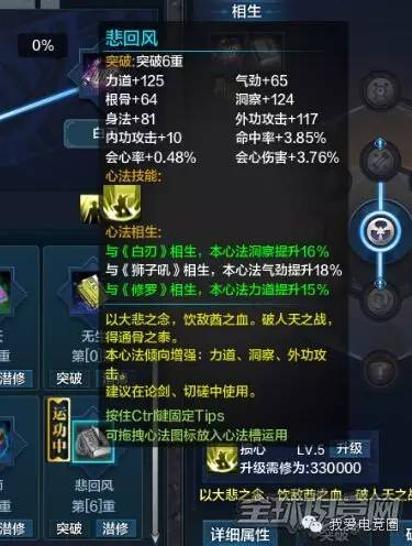 罗睺诀:此心法主要增加气劲、力道,和九婴相生,根骨提升15%,与长天心法相生,身法提升17%,心法技能焚血:增加内功攻击力,每秒损失50生命,持续20秒。再次使用技能可以提前结束焚血效果,耗血加攻虽然用处不大,但是配上神威的背水绝对没的说。