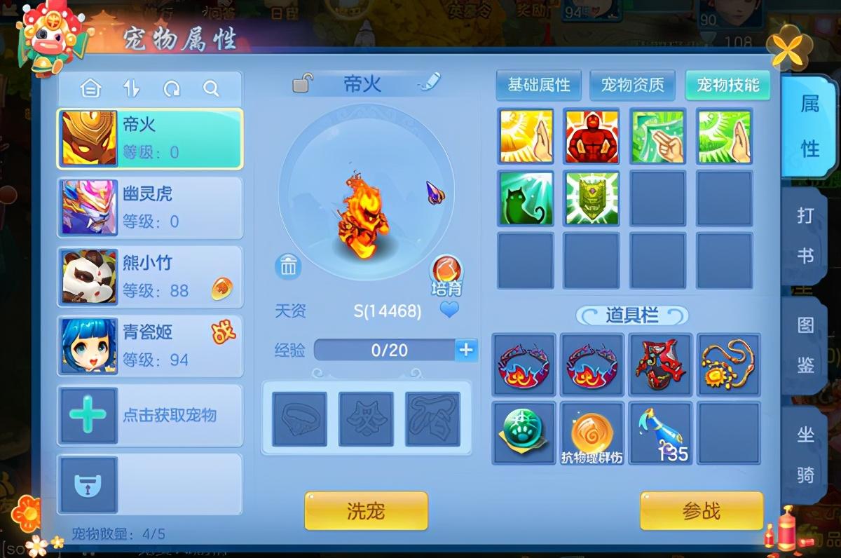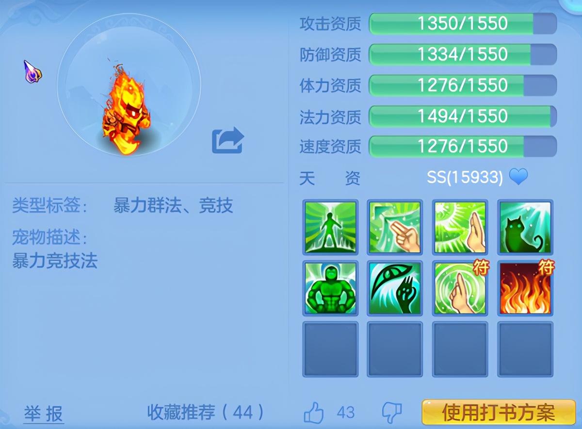 最后要说的就是暴力群法的帝火了,暴力群法通常是以伤害最大化为方向来打造的,生存方面并没有耐法宠那般坚固,但是其高爆发是法系输出可谓脆皮的噩梦。在打书方面可以选择高级法术暴击、高级法术连击、高级灵蕴、高级震慑搭配护符技能“高级法术波动”来使其法术伤害更加爆炸,另外搭配高级神佑复生和高级强壮提升其生存能力,这样打造下的帝火在对局中但凡出手,怕是难以招架。