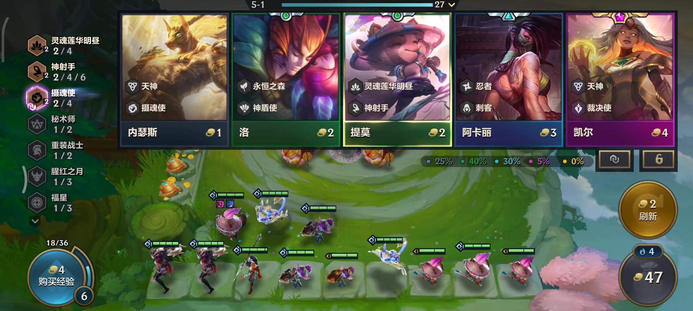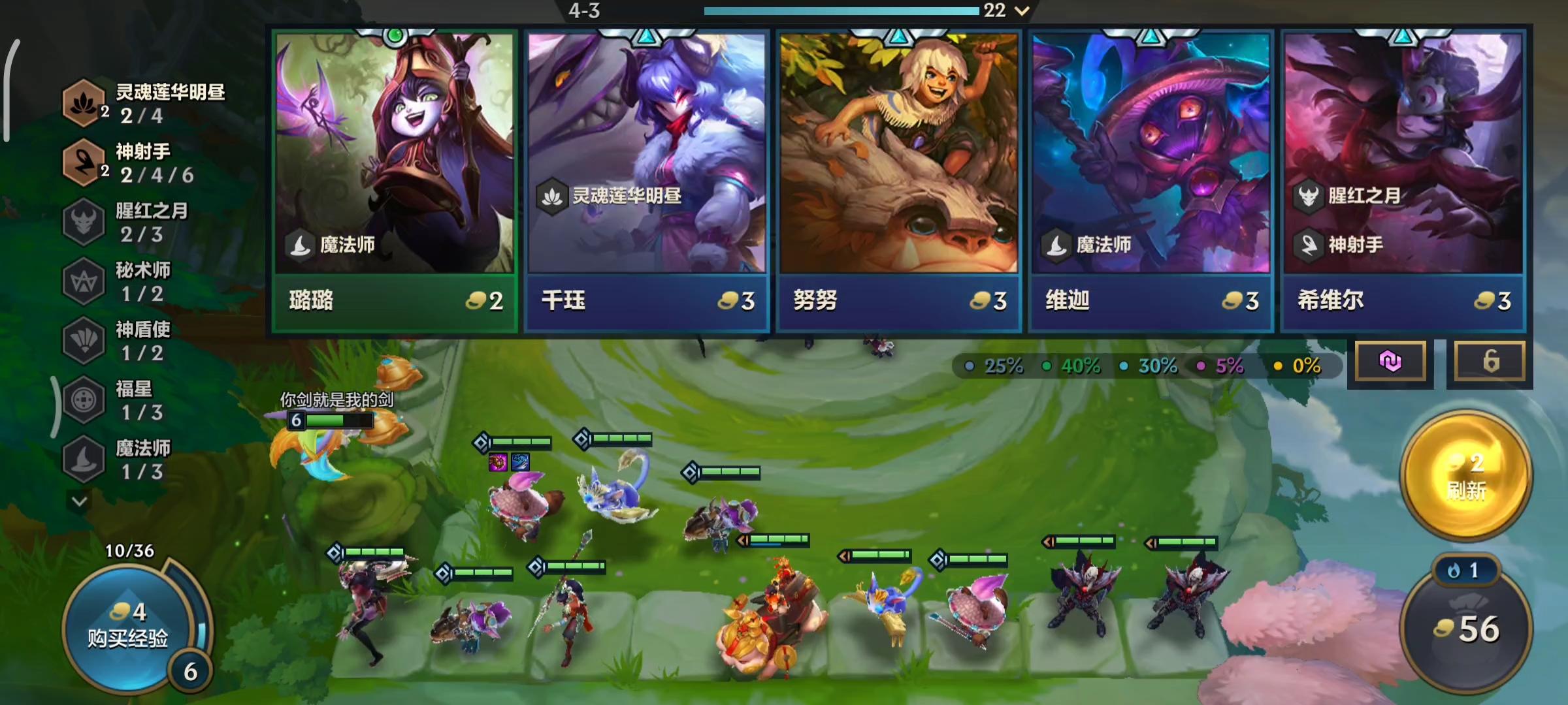 此阵容中,后排的输出都是低费卡,而前排以四费卡为主。因此,可以在6人口刷牌,将提莫升到三星之后,再冲击八人口。至于天选英雄,最好是提莫的天选射手,当然了,如果是提莫的灵魂莲华明昼,也还可以。只不过,届时需要再上一个射手来替换悠米。