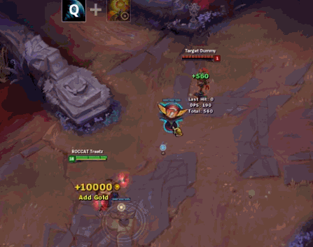 进入之前选择【升级】、【小兵刷新禁用】、【自动刷新冷却时间】、【自动刷新发力/能量】。之后传送到中路,添加一些敌方目标就可以了。