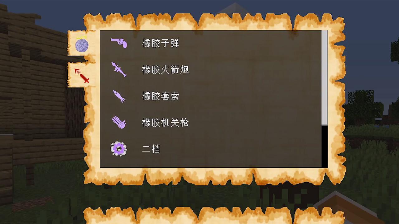 按alT键可以在物品栏和技能栏之间进行来回切换。就像动漫中的一样,不过在这里可不会直接将手伸长。会出现一颗子弹弹出去,但是有一定的冷却时间,就像打刷怪游戏一样。香蕉火箭炮也非常的好玩,有击退的效果。橡胶套锁非常的有趣,它有点传送的功能,橡胶套锁到什么位置,玩家立即就到什么位置。
