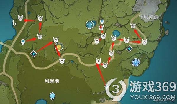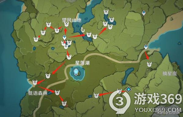 由于丘丘人太多了,就不一一例举了,这里“七休”标了一些富集丘丘人的地点的一部分。建议等级低的打蒙德璃月的丘丘人,血量低,也没啥大怪干扰你跑图,环境没那么恶劣。