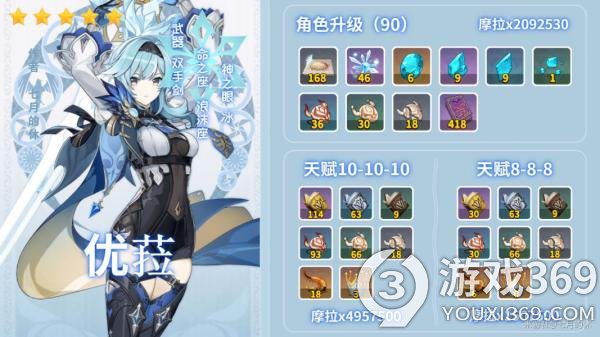 优菈是一个冰属性物理C核爆角色,是目前原神最高核爆记录保持者,等级天赋突破素材需要蒲公英籽、龙王之冕、晶凝之华、哀叙冰玉系列、丘丘人面具系列、抗争系列。